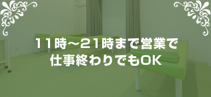 21時(最終受付20時)と夜遅くまで営業しているため、仕事終わり・学校終わりでも空いている時間で来店可能です。